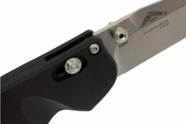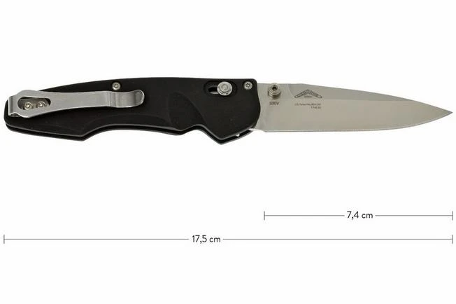 The Benchmade 470-1 Emissary Black pocket knife designed by Osborne Design is a slender designed pocket knife with a black aluminium handle and a blade made of the highly regarded CPM-S30V-powder steel. With comparable knives you often find that the support for the thumb cannot be reached easily because it is inevitably placed at a short distance of the handle. For this pocket knife that problem is solved by routing a part of the handle where your thumb automatically reaches the thumb-support ideally. This works for both left- and right-handed users. The assisted opening ensures this to be a very smoothly opening pocket knife.