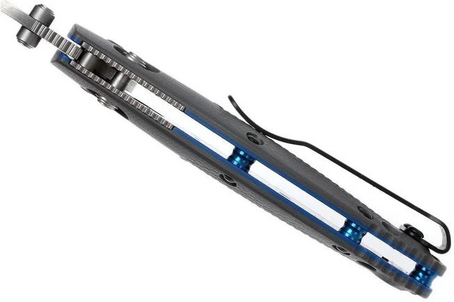 The Benchmade Mini-Griptilian 556 has a grey Valox (FRN) handle. Because it is not that big it is very suitable for people with smaller hands.