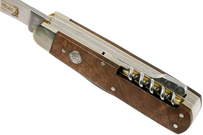 The Böker Jagdmesser Quadro Jäger Gold 110646 is a classic hunting knife, according to typical German design. This pocket knife contains everything you might need during a hunting trip: a pocket knife, skinning knife, (bone)saw and the bottle opener and corkscrew for the drink afterwards. A real classic for those who appreciate these types of knives.