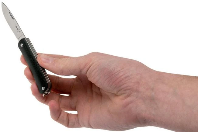 The pocket knives from the Böker Plus Mini Tech-Tool collection might all remind you of the famous Swiss pocket knives. Instead of a traditional red plastic scale these new knives are enhanced with G10 scales. The blade is made from Sandvik 12c27-steel, a stainless type of steel that was specifically developed as a knife steel. The blade is enhanced with a remarkable hollow grind. As such it is thin above the edge, which improves the cutting properties. It doesn’t contain a real lock, but a slipjoint firmly keeps the blade in place when opened. The back of the handle is enhanced with a keyring.