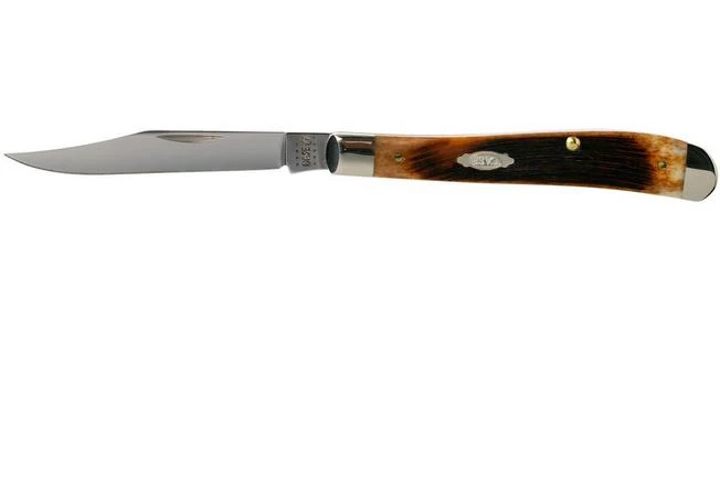 The Case Slimline Trapper is a simple, traditional pocket knife. It has a long and slim blade with a clippoint shape. You open it with two hands and when opened the blade is locked by a slipjoint. The shape is based on the classic Trapper design.