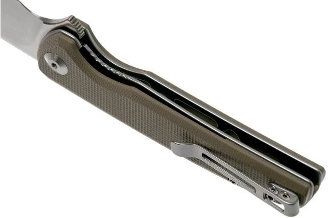 The Civivi Brigand C909 is a cool pocket knife with a characteristic blade. A type of modified cleaver design, with a sharp tip. Because of the ball bearings you can quickly open the knife with the help of the flipper. When opened the blade is locked by a solid liner lock. As such your fingers are safe when you use this knife.