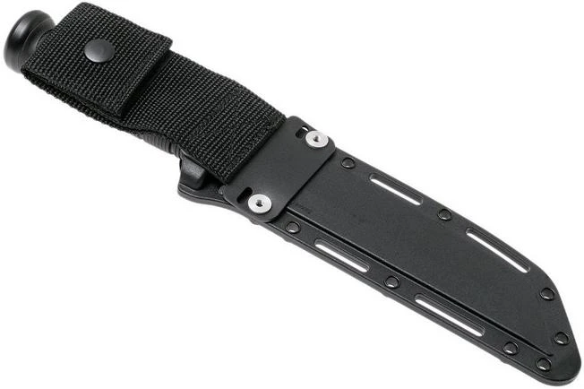 The Cold Steel 39LSFCT Leatherneck Tanto is a fixed knife with a tactical appearance. The blade is made from German D2 tool steel. This is a non-stainless type of steel with exceptional qualities in terms of sharpness retention and toughness. To protect the blade it is enhanced with a black coating. The handle of this knife is made from Kray-Ex and offers you a lot of grip. To make sure you don’t slip and end up on the blade, the knife is equipped with a sturdy steel finger guard.