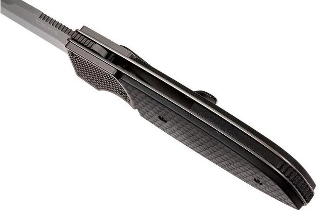 The CRKT Fulcrum 2 large CK7435 is a cool pocket knife designed by the American designer Ross Kommer. He is known for his eccentric design style. You can clearly see this style when you look at this pocket knife. The opening is unique. Slide the top aluminium scale to your left to open the knife. Now slide the handle to the right to completely lock the knife with the liner lock. During this exceptional lock the scales slide alongside each other in quite a remarkable way. It doesn’t get any cooler than that!