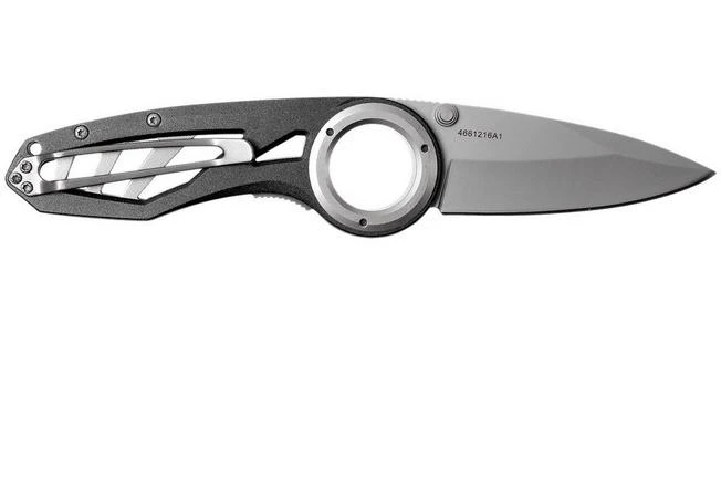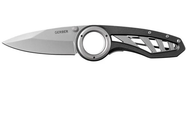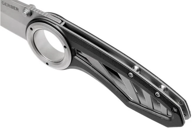 The Gerber Remix is a striking knife with a practical design. Broader than your average Gerber pocket knife but not necessarily impractical. The first thing you notice is the large eye at the end of the blade. This eye has been added to the blade to make sure it has enough room for a finger to ensure maximum stability during use.