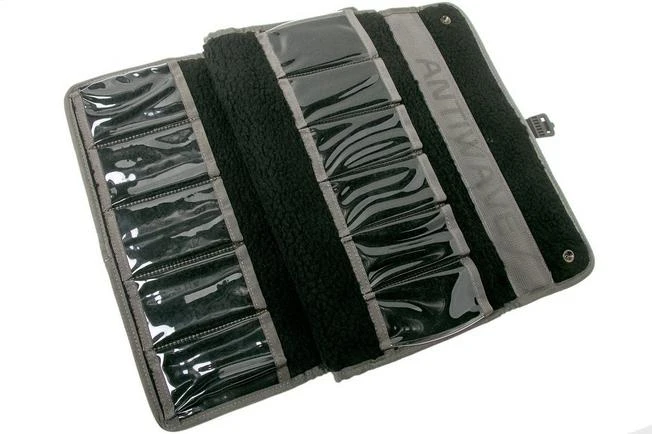 The Real Steel Pilgrim 22 is a large knife bag with enough room for 22 knives. There are 12 pockets, of which 10 are slightly bigger than the other 12. As such your entire collection, from large to small, will fit inside.