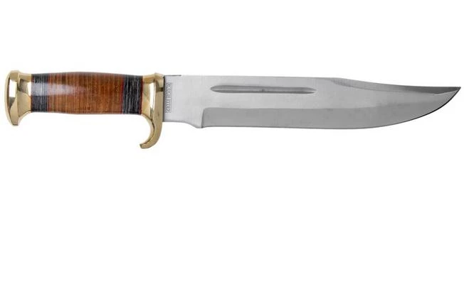 The Rough Ryder Stacked Leather Bowie is a large bowie knife. Originally bowie knives were used for hunting purposes. Today a bowie like this should be the highlight of your showcase. An incredibly cool and large knife. With an amazing look and feel thanks to the cool handle. And all that for an amazing price.