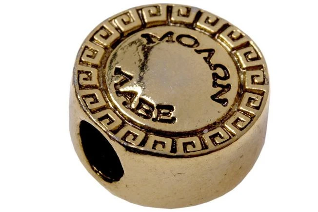 The Spartan Blades Shield Bead is a cool lanyard bead made by Spartan Blades. It contains the image of a Spartan shield. The side is adorned with the famous saying: ‘ΜΟΛΩΝ ΛΑΒΕ’ Roughly translated: Come and take it! Add a lanyard to your Spartan Blades knife and use this bead to make it even more exclusive. The inside diameter of the hole is approximately 5 mm.