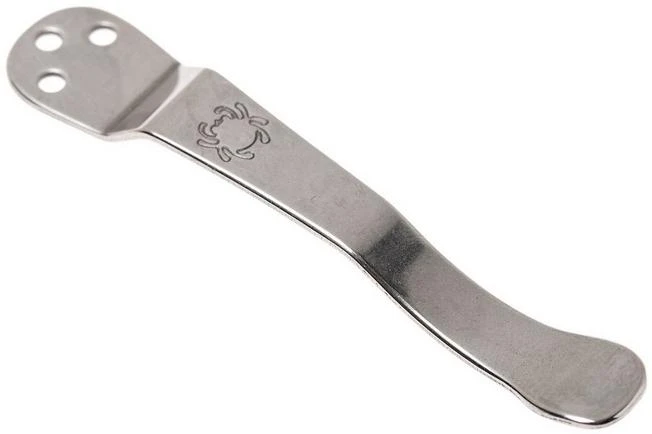 Spyderco Pocket clip silver for C07-C08-C10-C11-C81 models. Sometimes the pocket clip bends because it gets caught behind something. Or it scratches. If this happens you can replace the clip with this one. Three screw holes and a length of 6.4 cm. Properly compare this to your current clip: Spyderco has a lot of clips that look alike but have different lengths!